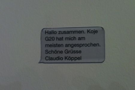 Koje G 20 hiess der Auftritt von Christa Baumgartner, Noël Fischer, Dieter Hall, Ursula Steinacher und Alex Winiger an der Kunstszene Zürich 2011.